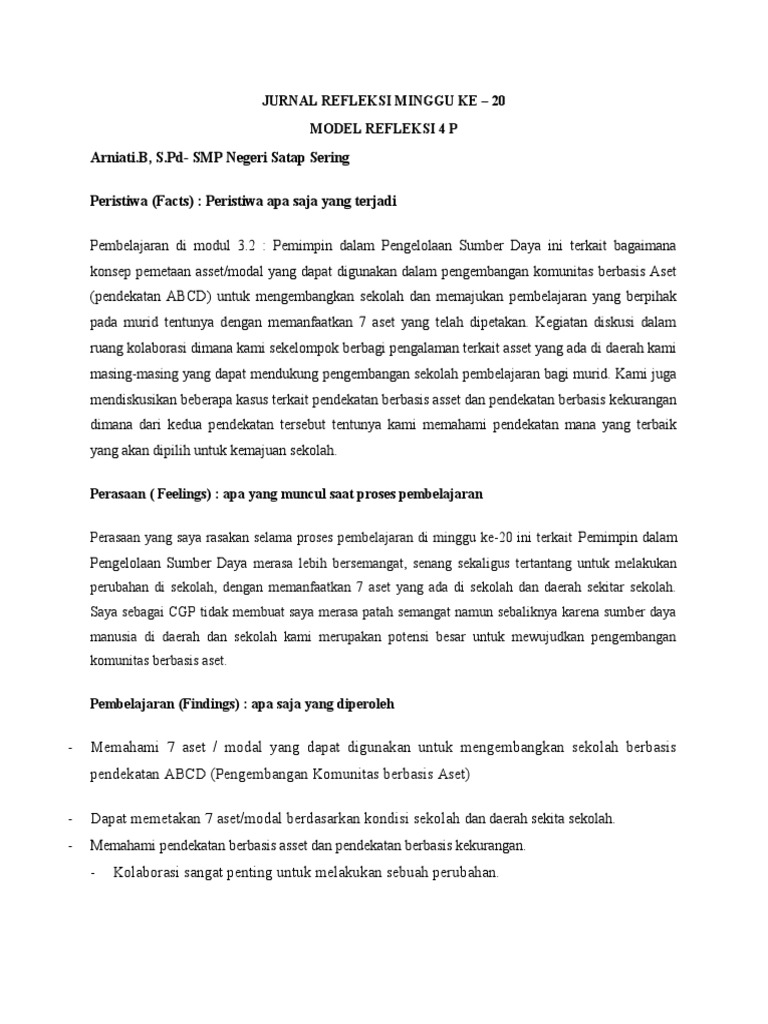Jurnal Refleksi Minggu Ke 20 Pdf